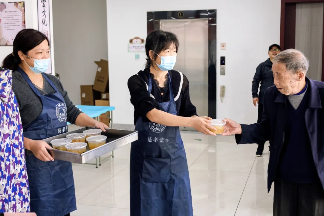 在这一天,慈孝堂集团精心筹备,分别在慈孝堂敬老之家和雀山岭村老年活动中心,开展了一场暖心的送粥活动。现场,工作人员们将分装好的红枣银耳羹送到老人们的手中。