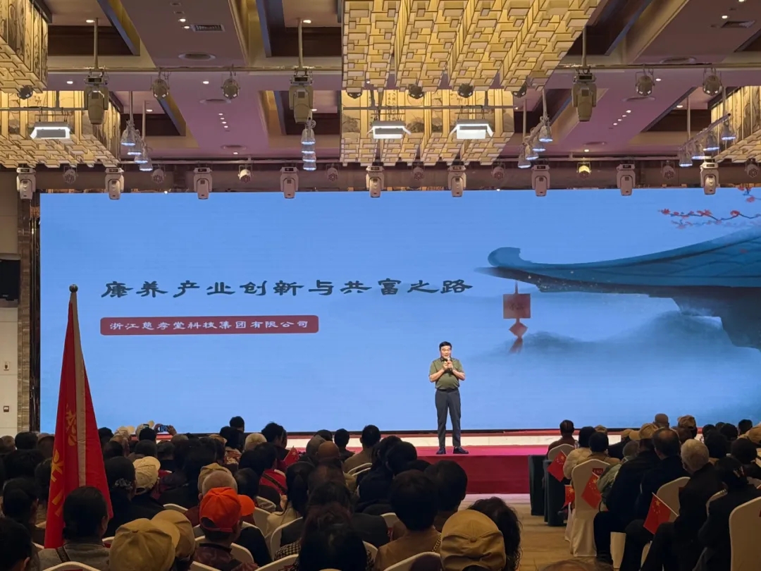大会现场,慈孝堂集团创始人楼中平先生亲临并讲话,深入剖析了康养产业的创新发展路径以及共富之路的探索方向,激发了大家对康养产业未来发展的无限憧憬和坚定信心。